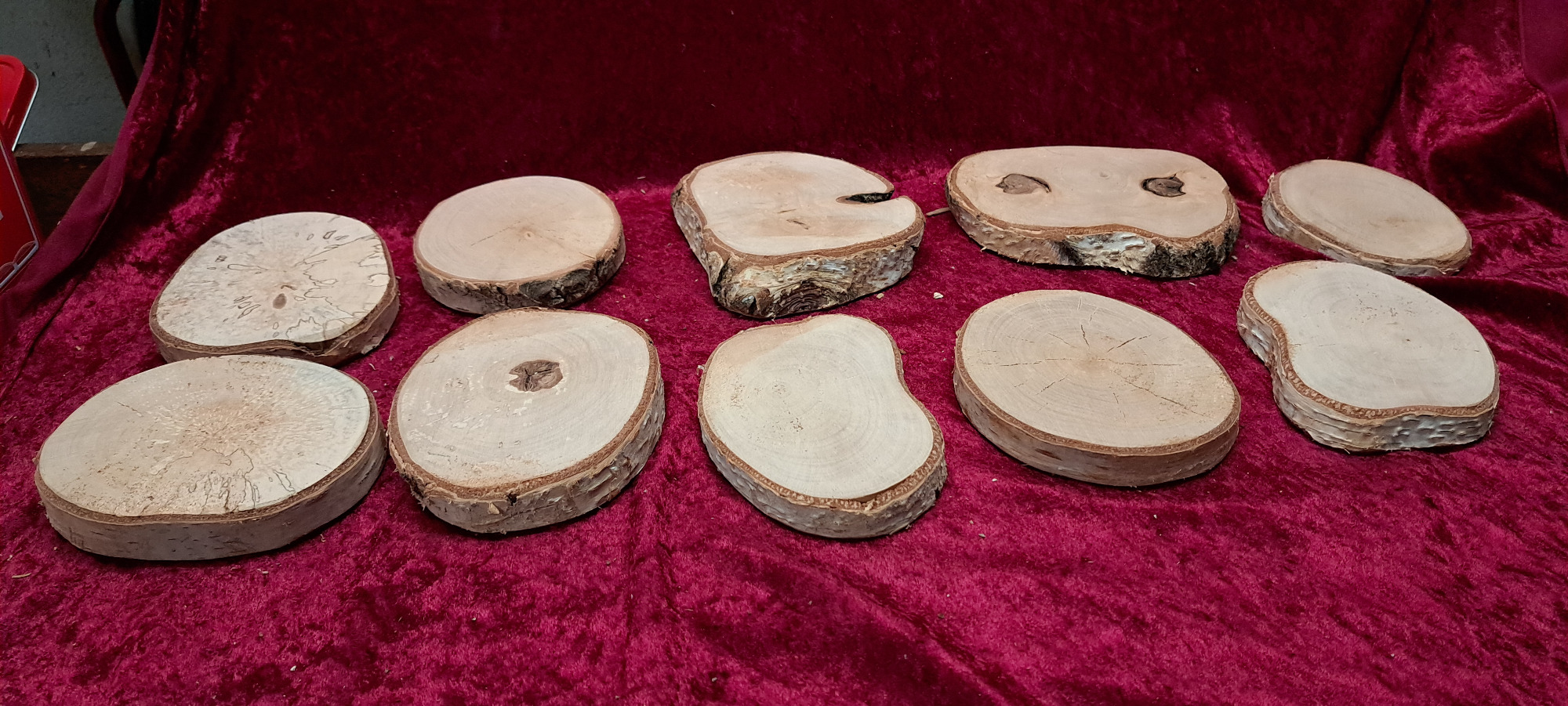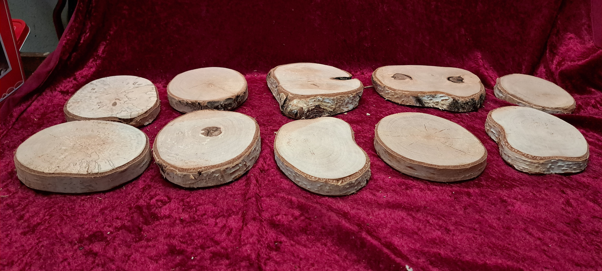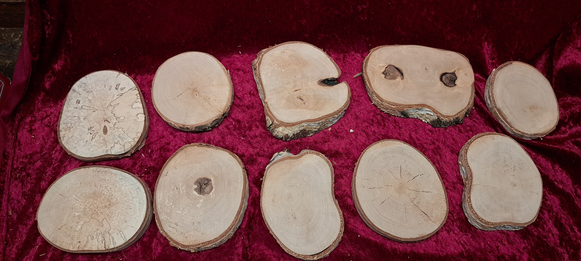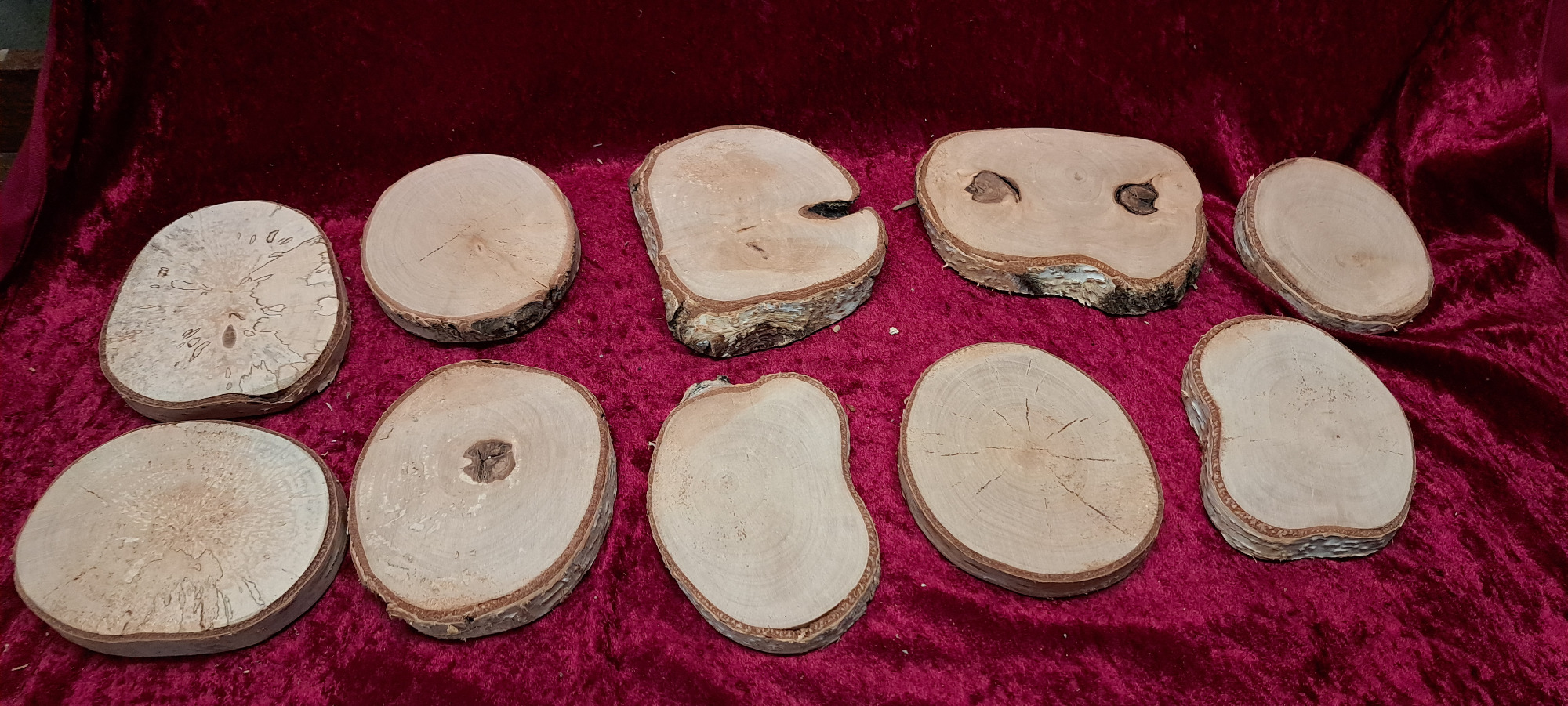 Es handelt sich um ein Naturprodukt, daher hat jede Scheibe eine andere Form und Maserung