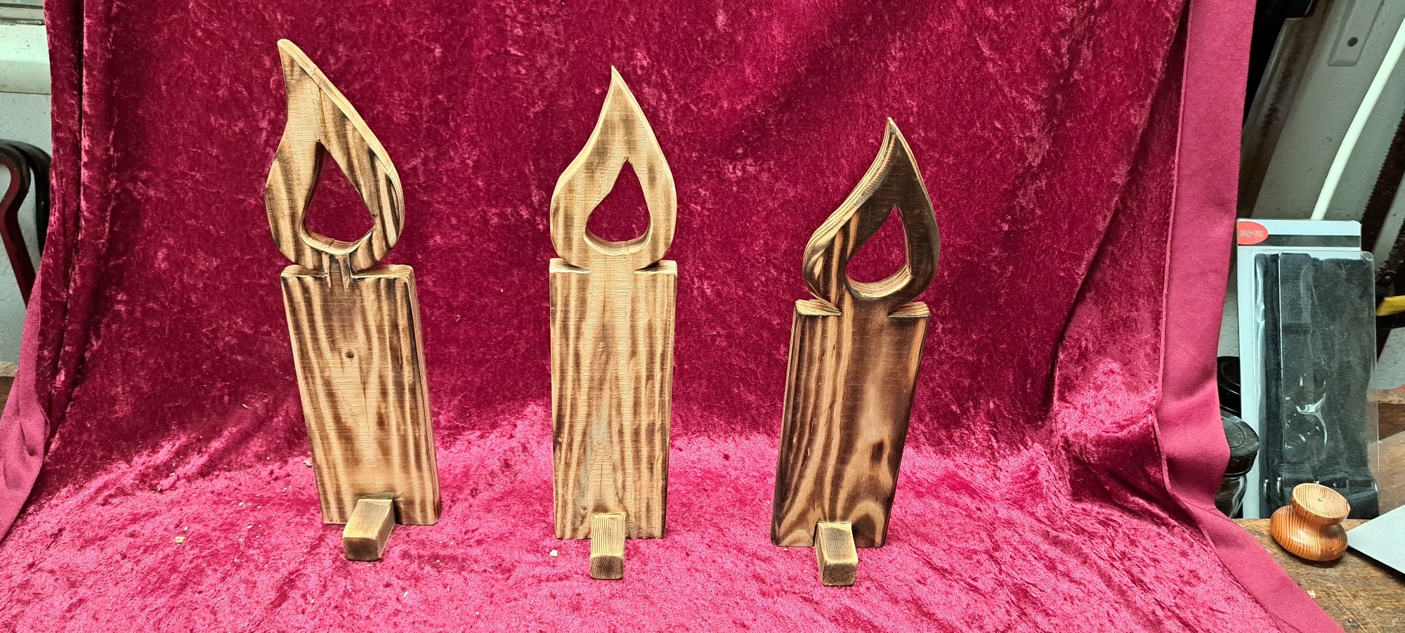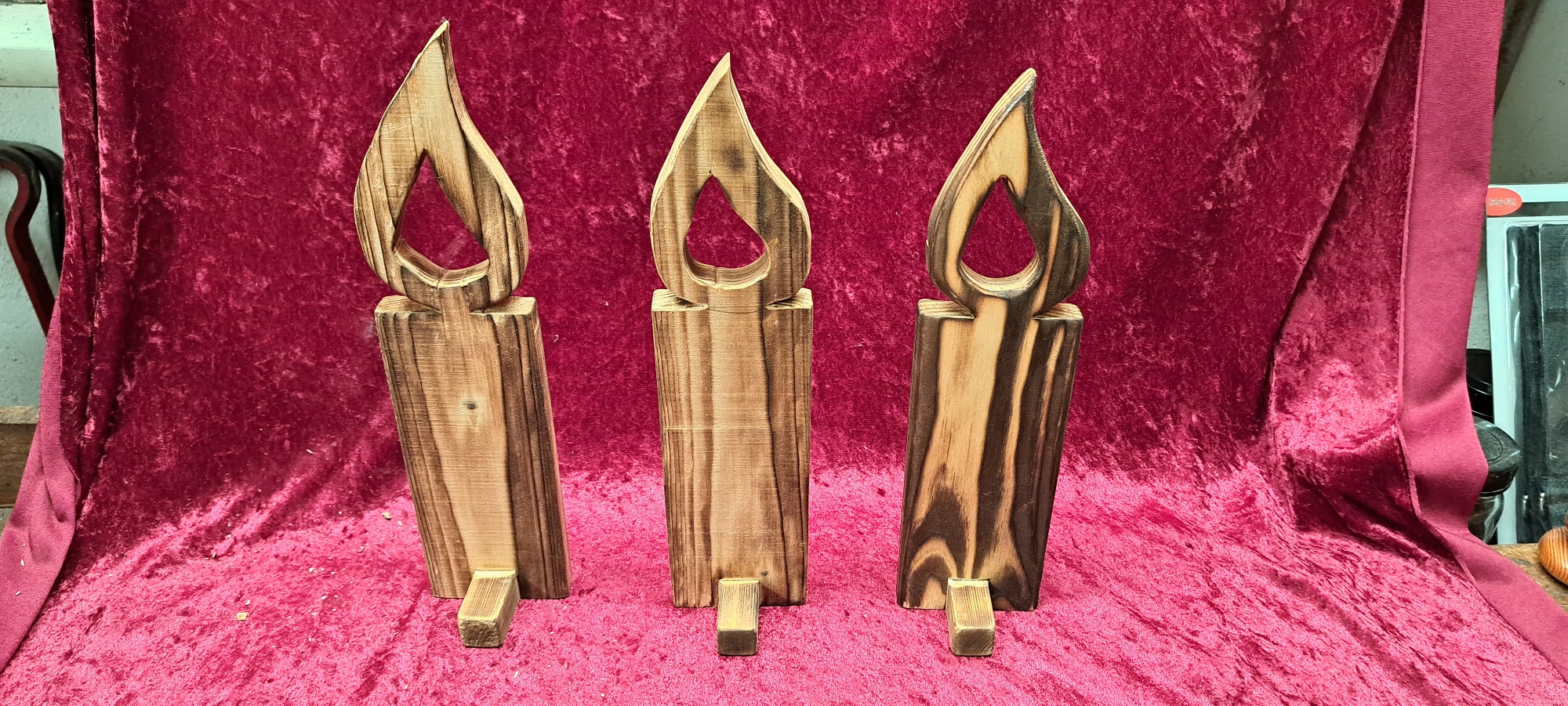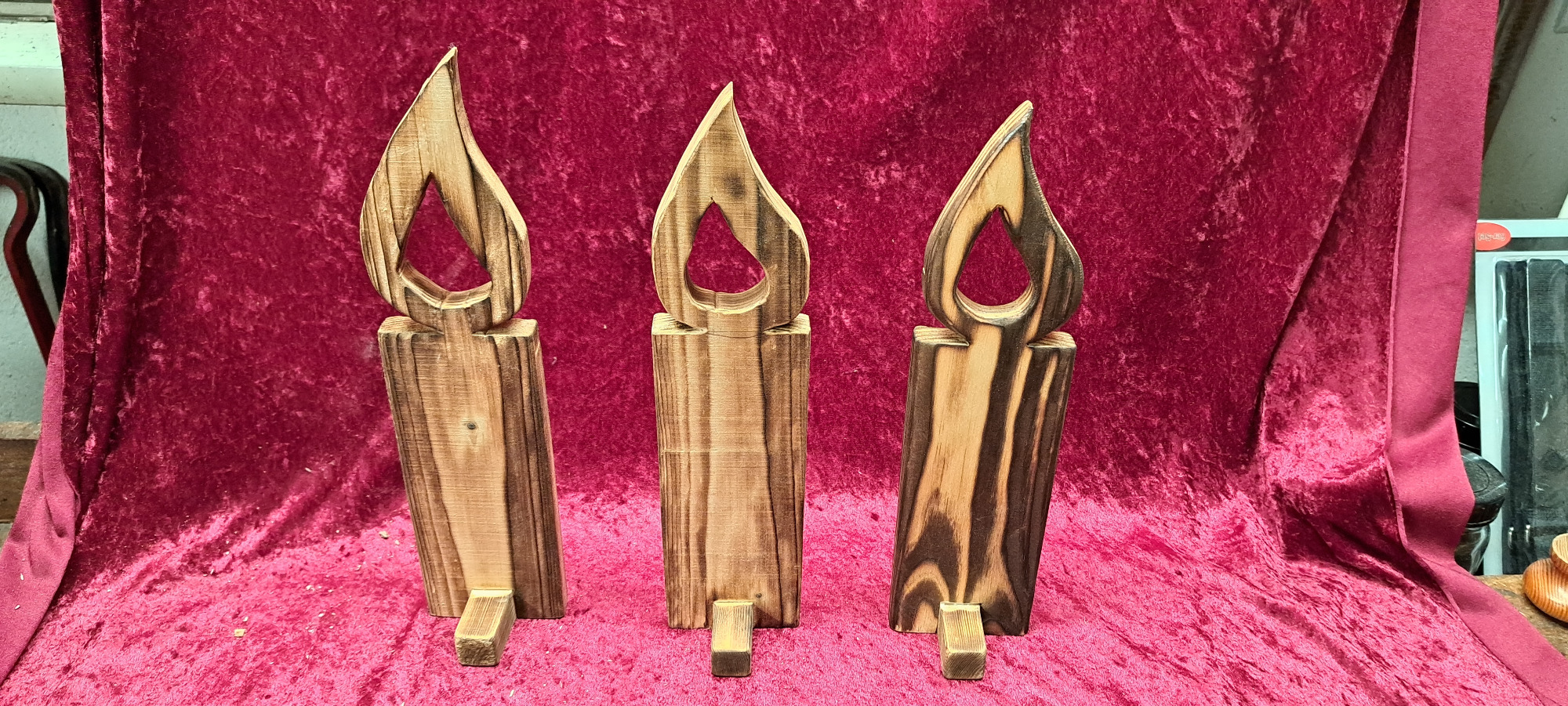 Die unbehandelten Kerzen können auf Wunsch gerne mit Holzöl, Beize, Lack etc. behandelt werden.