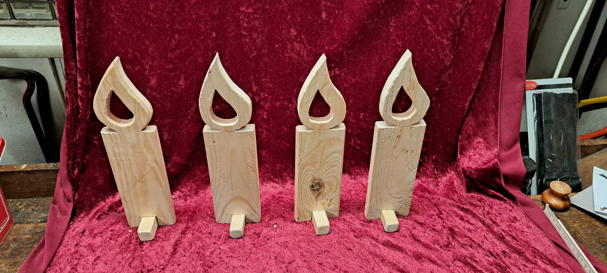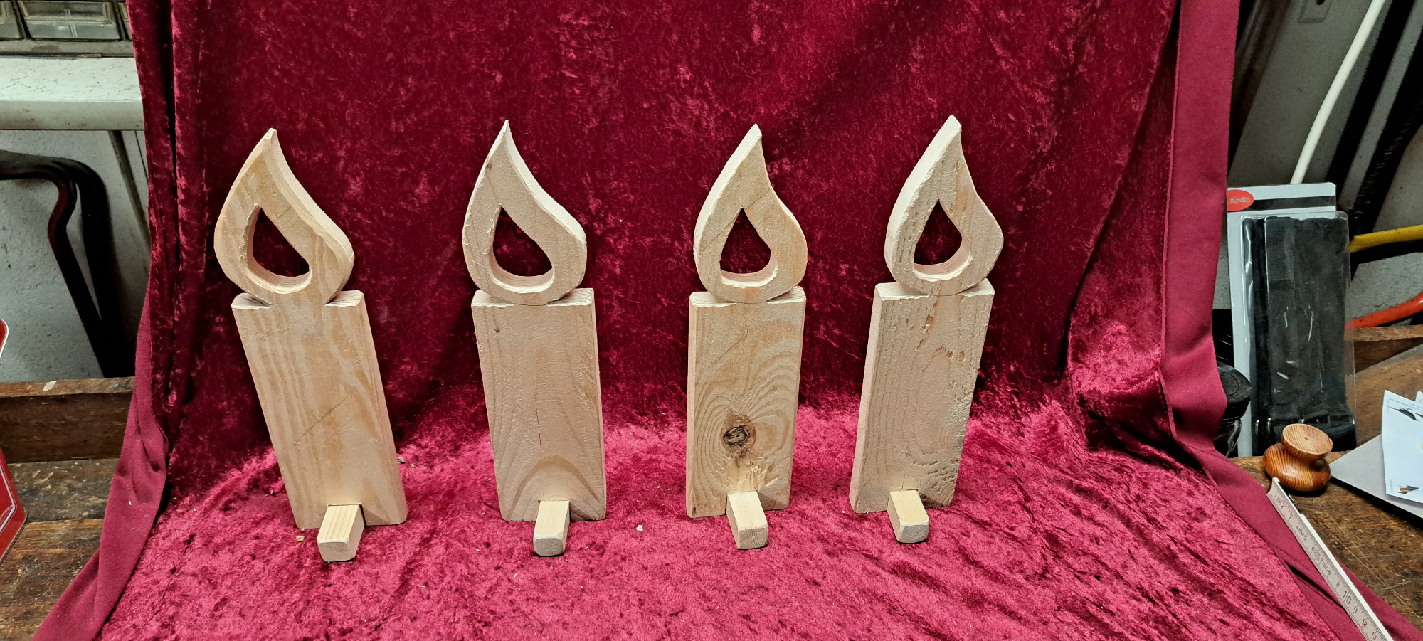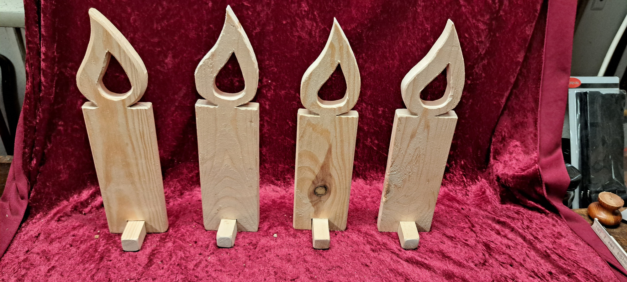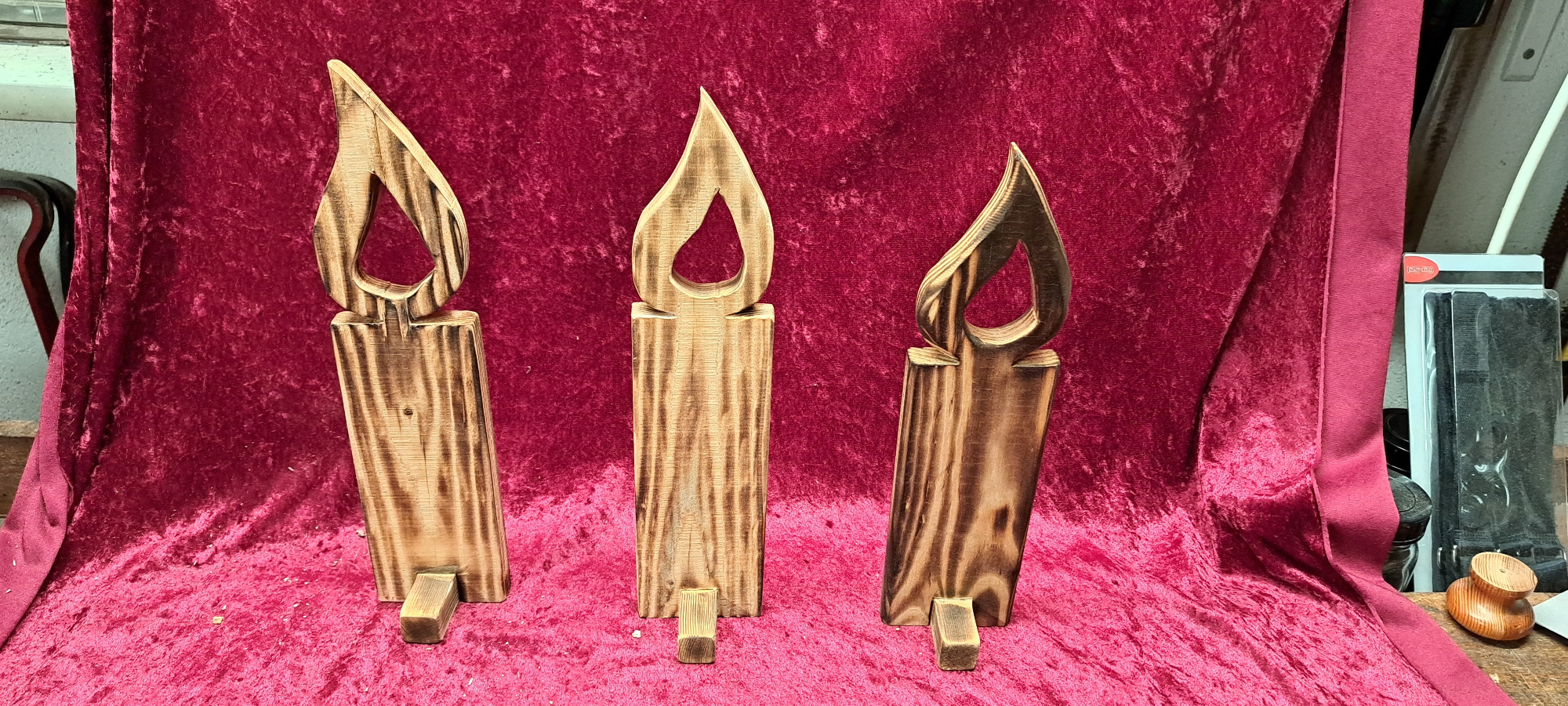 Die unbehandelten Kerzen können auf Wunsch gerne mit Holzöl, Beize, Lack etc. behandelt werden.